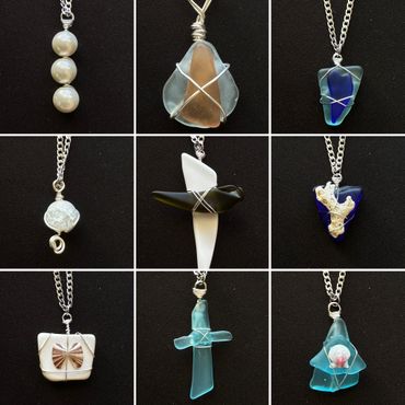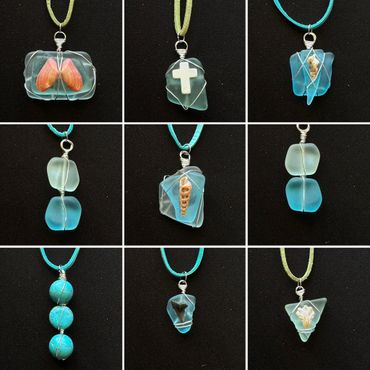 Elevate your style with the Passagrille Pendant, a unique handcrafted piece showcasing a stunning blue sea glass and textured coral fragment. Perfect for any jewelry enthusiast.